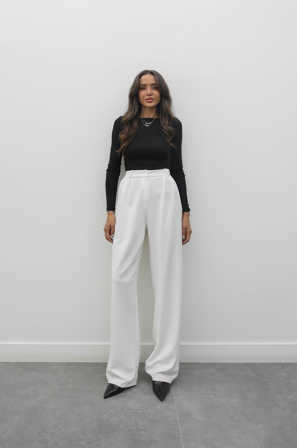 YÜKSEK BEL, ÖNÜ DÜĞMELİ VE FERMUARLI, YANLARI CEPLİ, PİLELİ PANTOLON