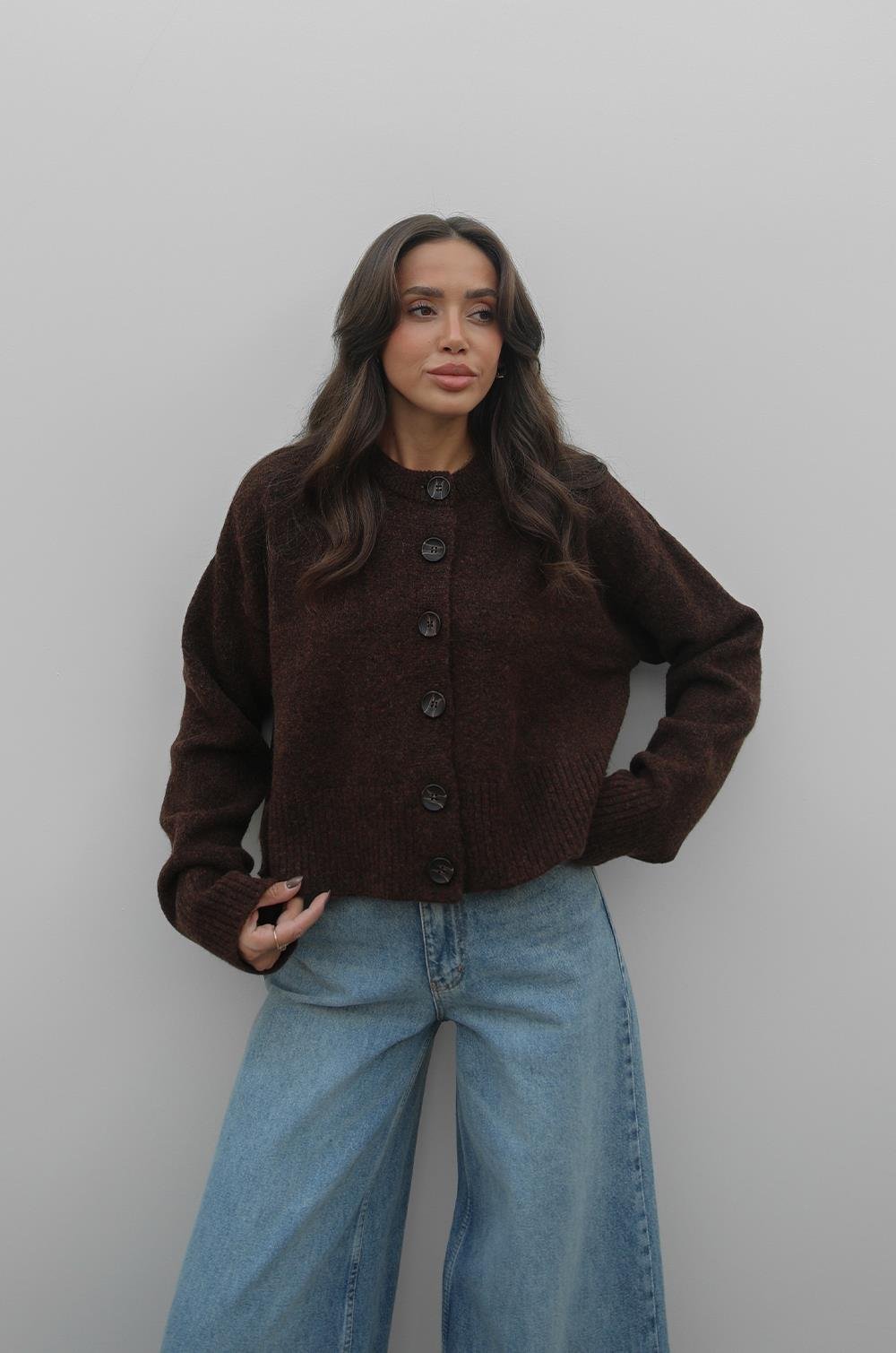 Acı Kahve Yırtmaçlı Yumuşak Dokulu Hırka