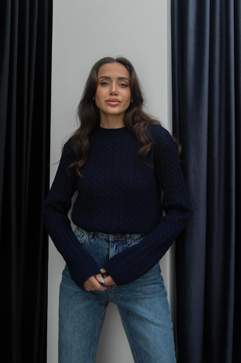 Lacivert Tuti Saç Örgülü Kazak