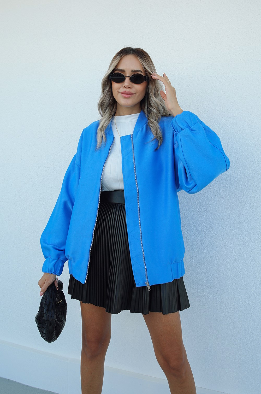 UZUN KOLLU, YUVARLAK DİK YAKA, ÖNÜ FERMUARLI VE BİYELİ CEPLİ, KENARLARI LASTİKLİ BOMBER CEKET Model Ölçüleri : Boy : 166cm Kilo : 49kg Modelin Beden : S/36 Beden Ürün İçeriği : %10 Cotton %78 Polyester %2 Likra %10 Viscose Tahmini boyu : 64cm