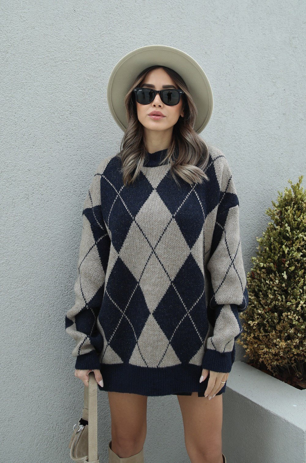 Lacivert Vizon Baklava Desenli Kazak (Hkaz457)