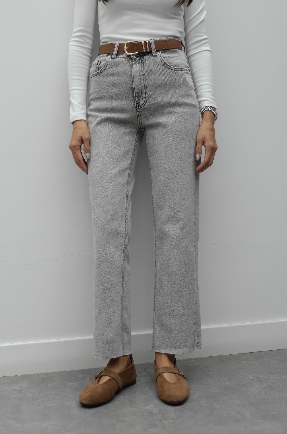 Açık Gri Paça Kesimli Kemerli Jean (HJea580)