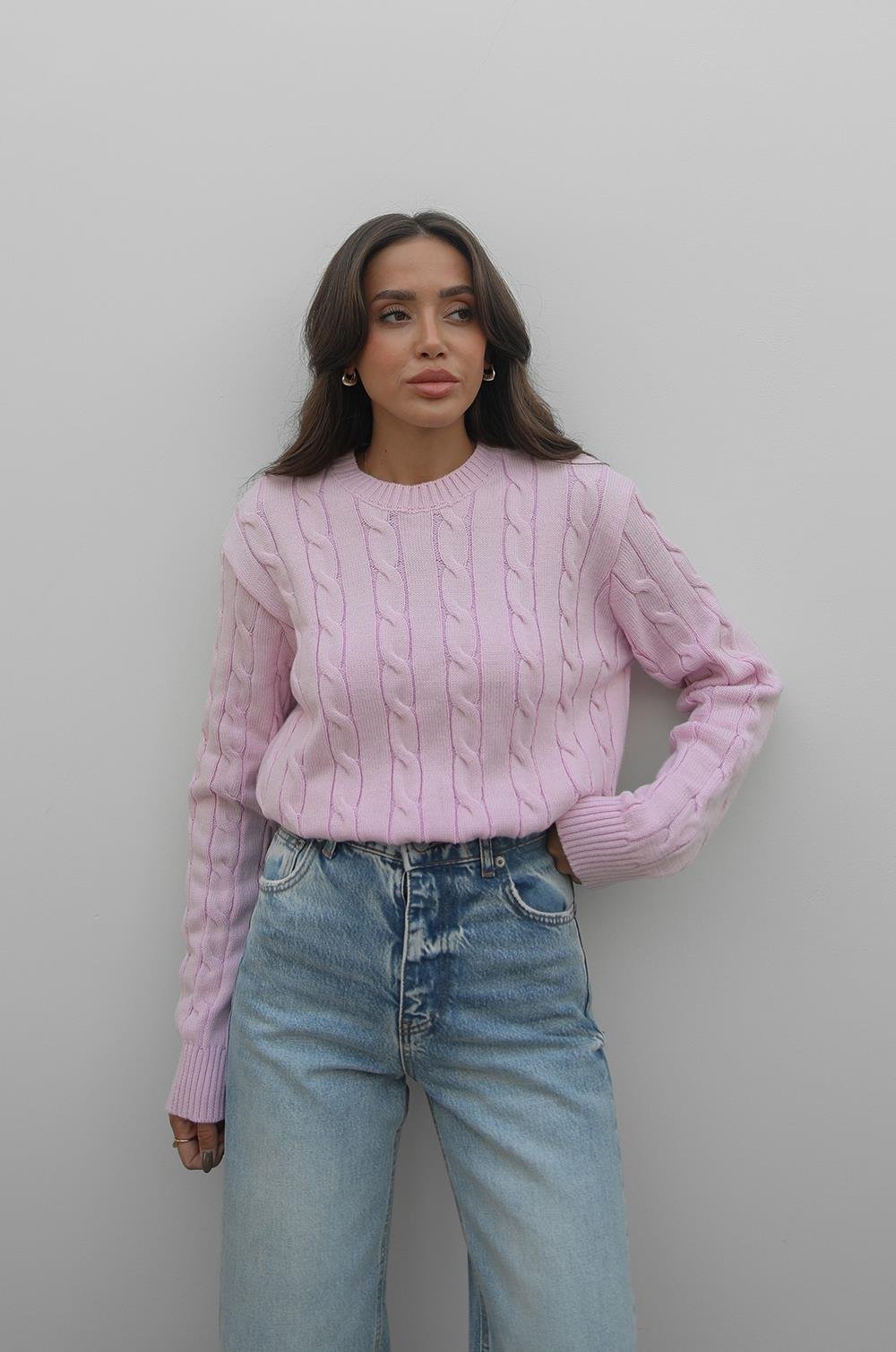 Açık Pembe Saç Örgülü Triko Kazak (Hkaz621)
