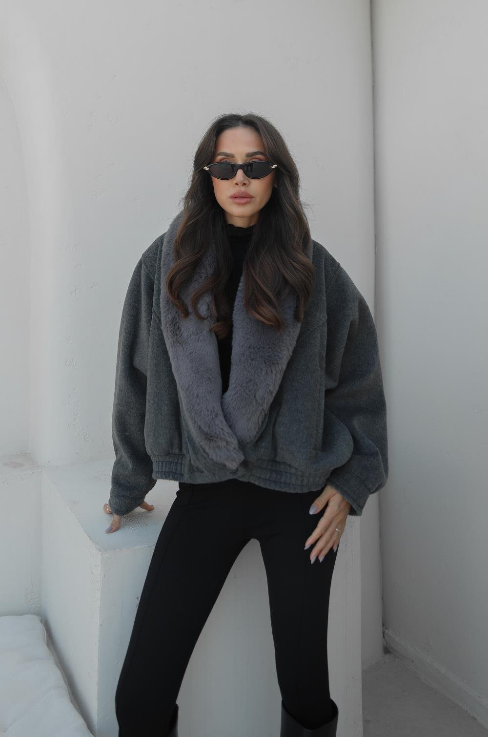 Antrasit Peluş Kürk Yakalı Mont (Hmon169)