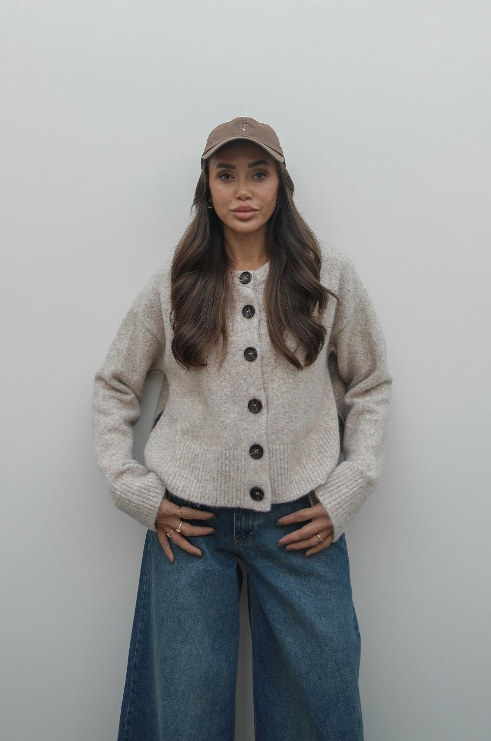 Bej Yırtmaçlı Yumuşak Dokulu Hırka