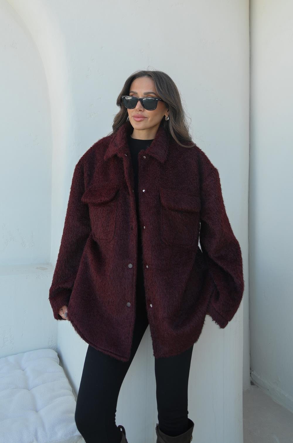 Bordo Önü Cepli Çıtçıtlı Özel Dokulu Ceket (Hcek635)