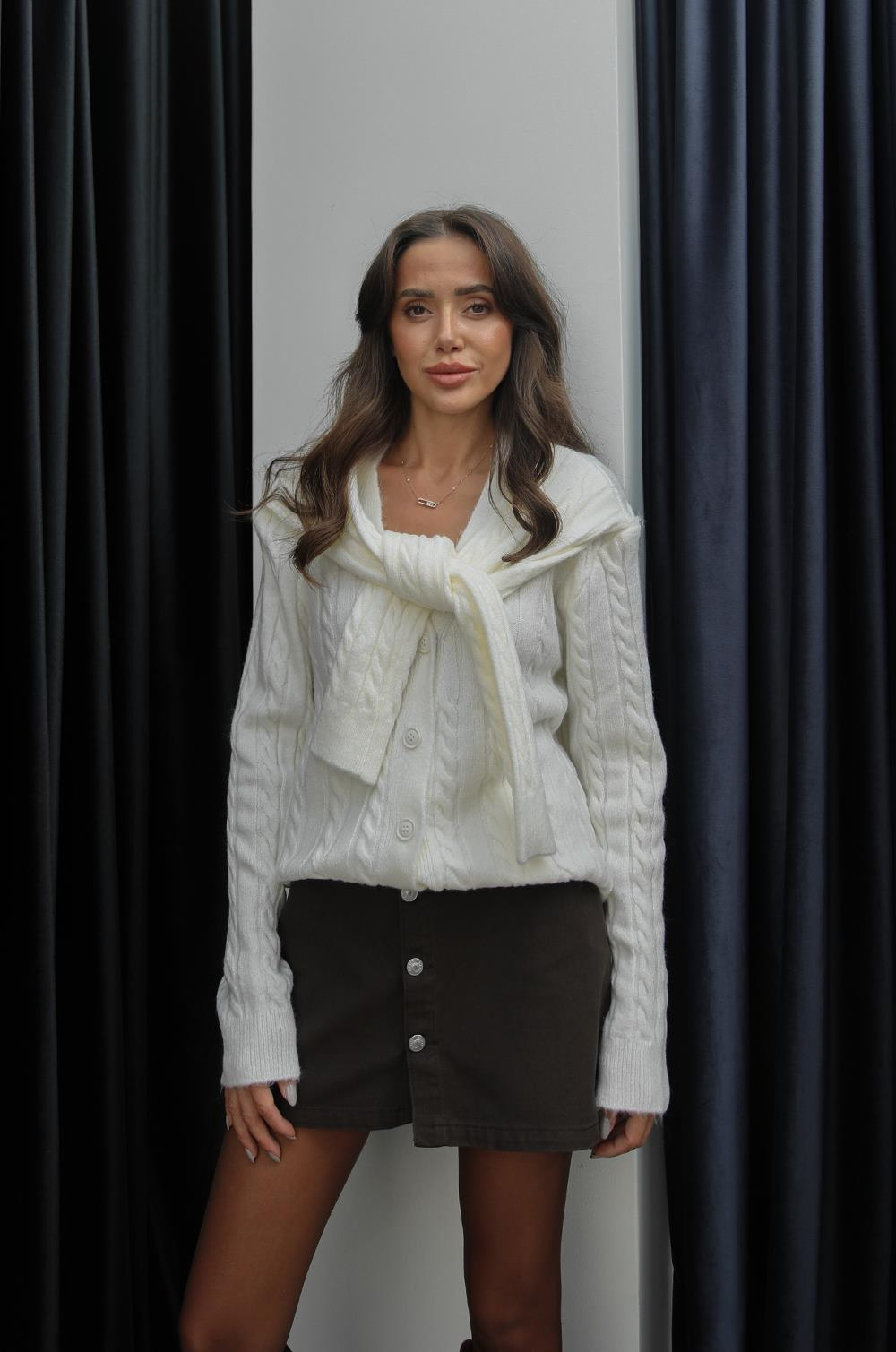 Siyah Omuz Atkısı Detaylı Hırka Kahverengi Omuz Atkısı Detaylı Hırka