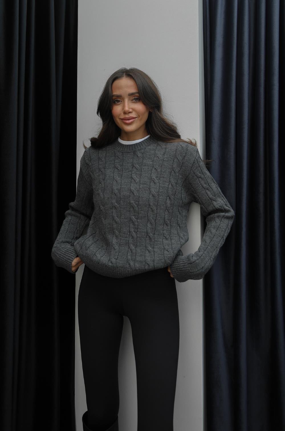 Antrasit Saç Örgülü Triko Kazak (Hkaz621)