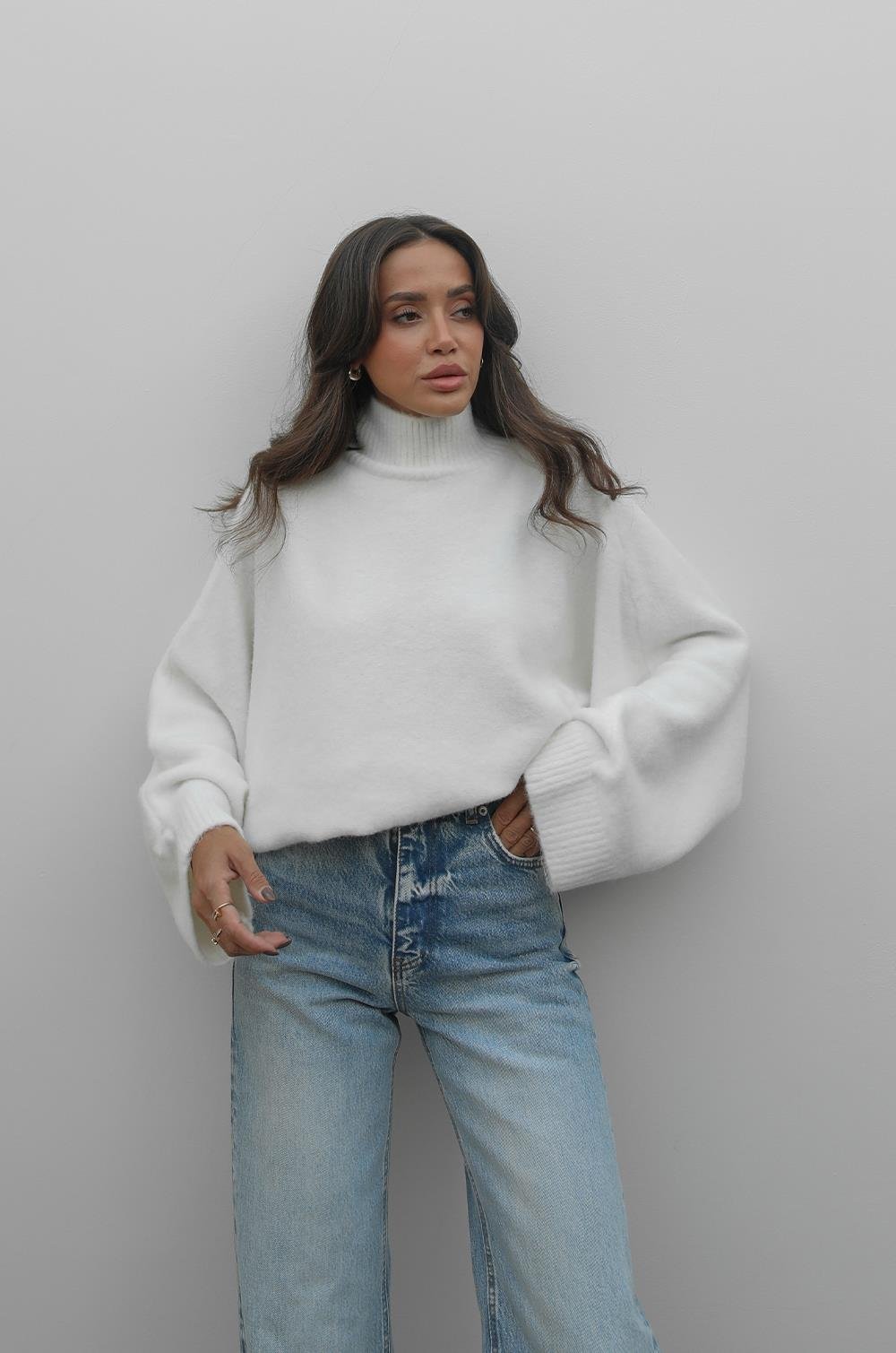 Ekru Yarasa Kol Yumuşak Dokulu Kazak