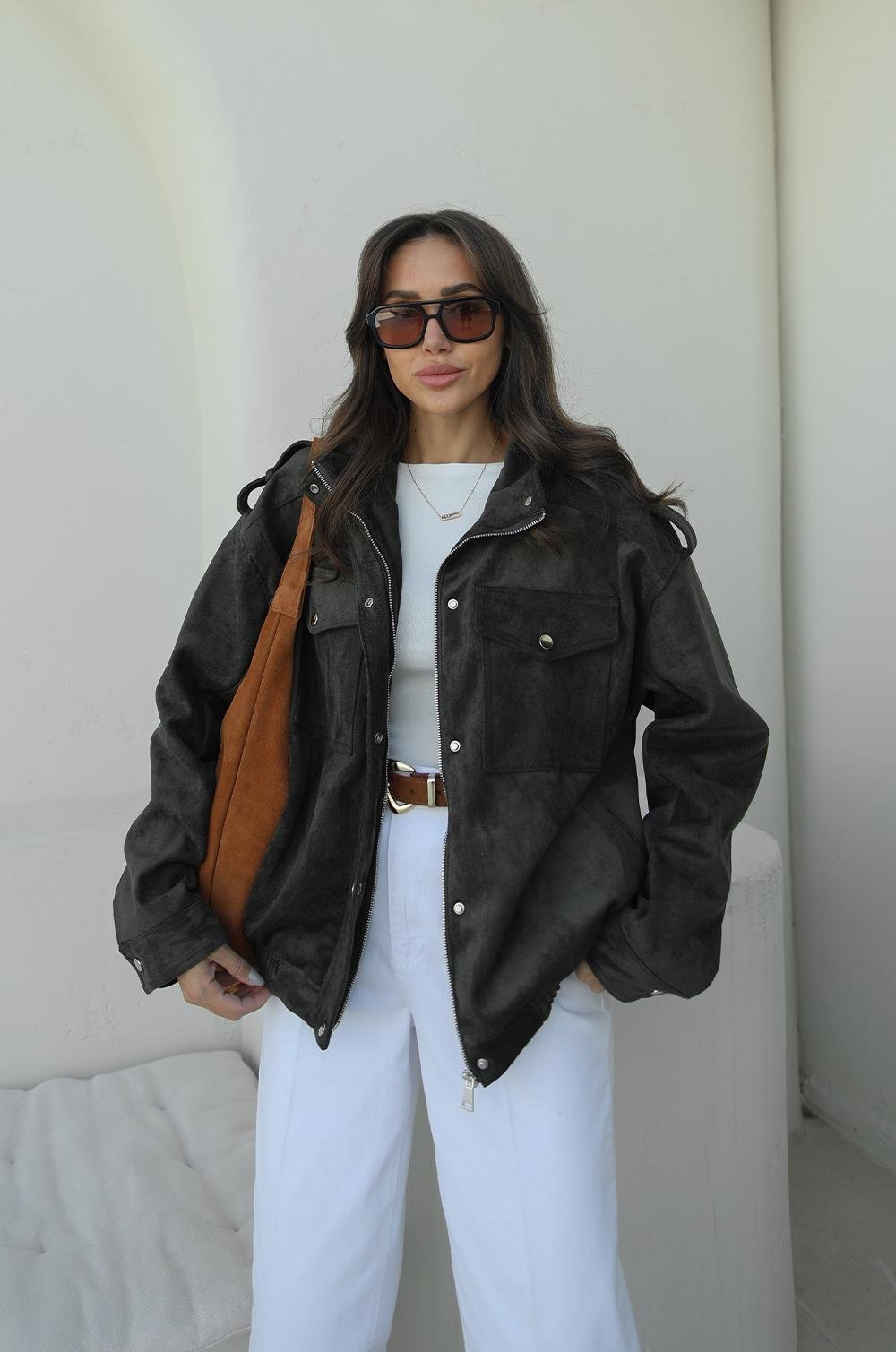 Haki Premium Fabric Deri Süet Ceket (Hcek640)