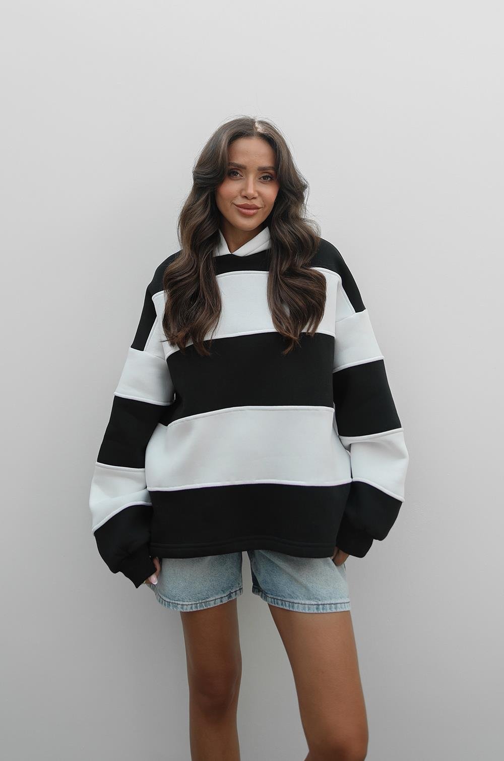 Siyah Kalın Çizgili Şardonlu Sweatshirt