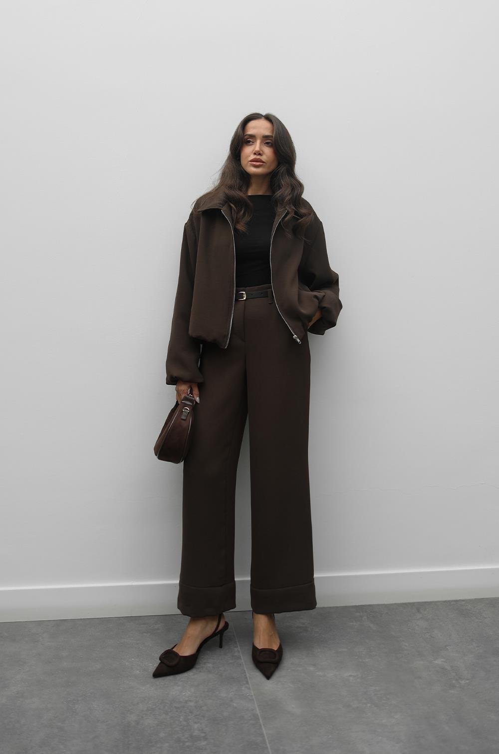 Kahverengi Paçası Katlamalı Pantolon Ceket Takım (Htkm1384)