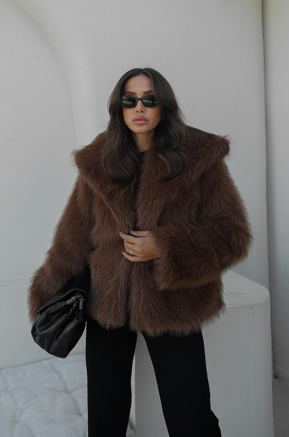 Kahverengi Premium Suni Kürk Ceket (Hcek489)