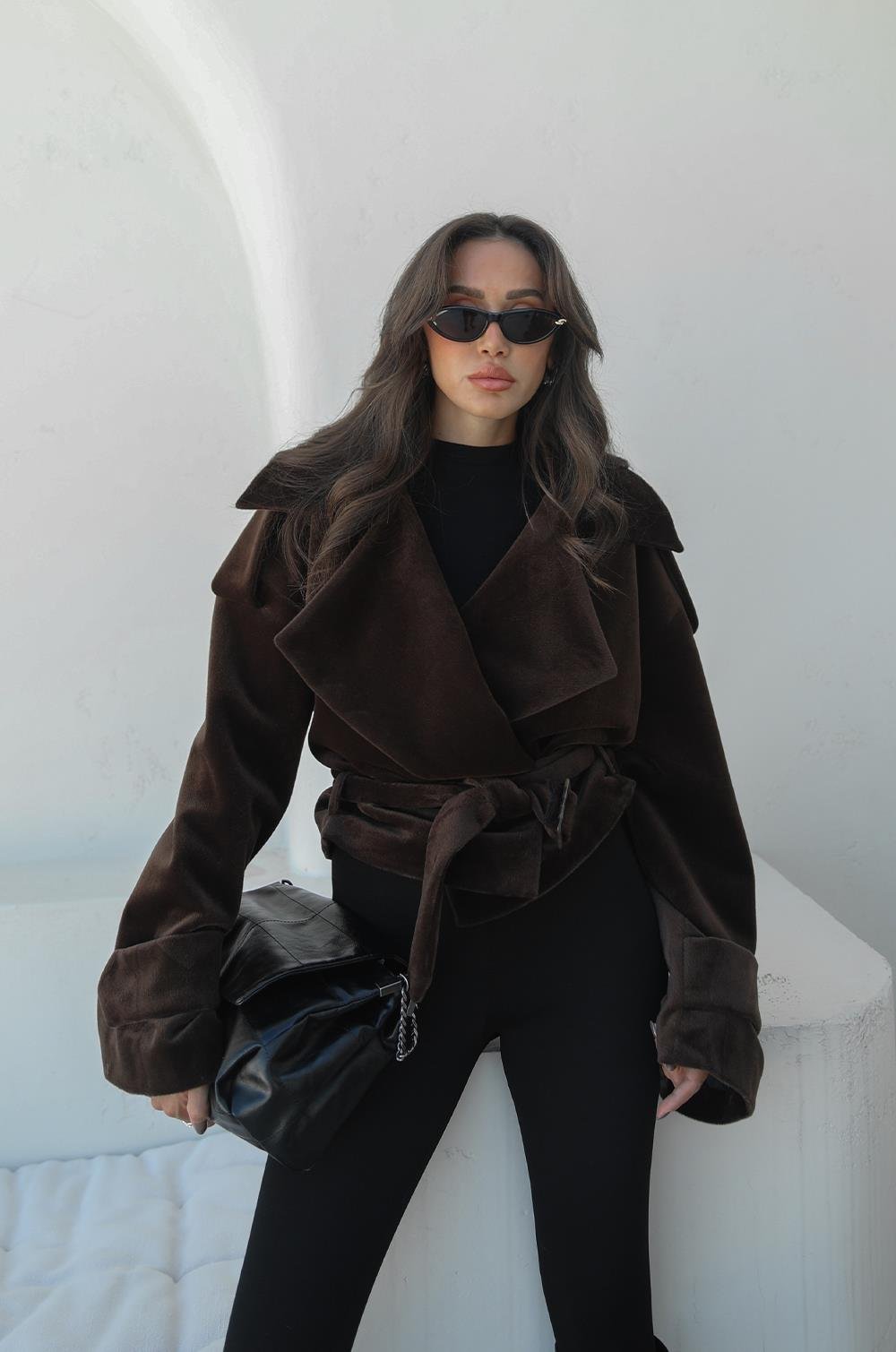 Kahverengi Zack Altı Kemerli Kürk Ceket