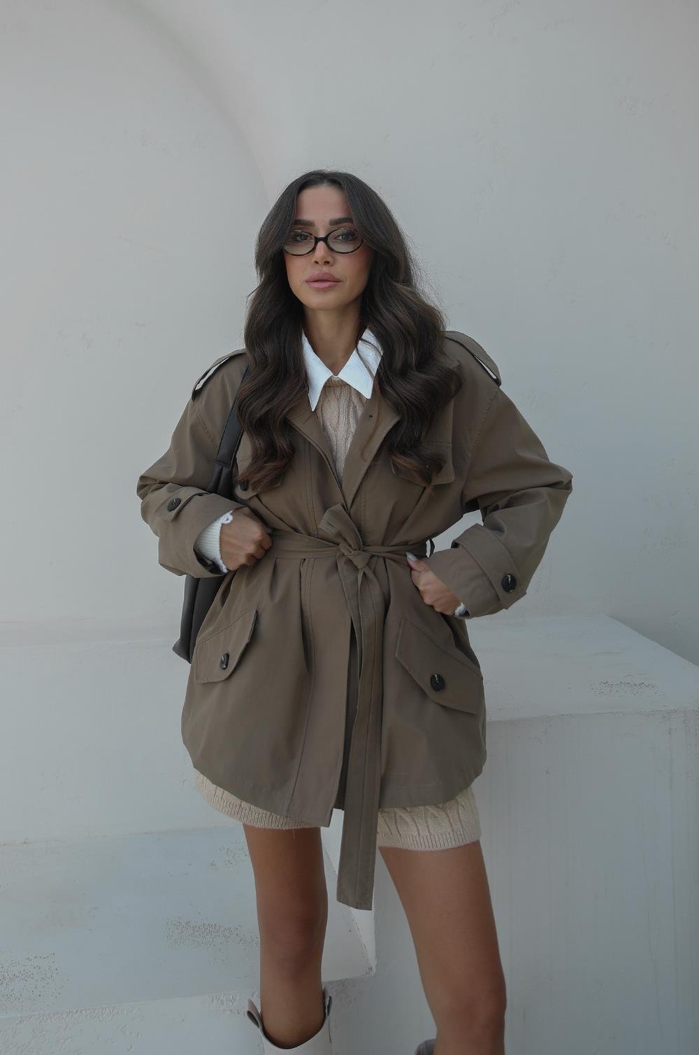 Koyu Bej Bonifer Kuşaklı Kısa Trençkot