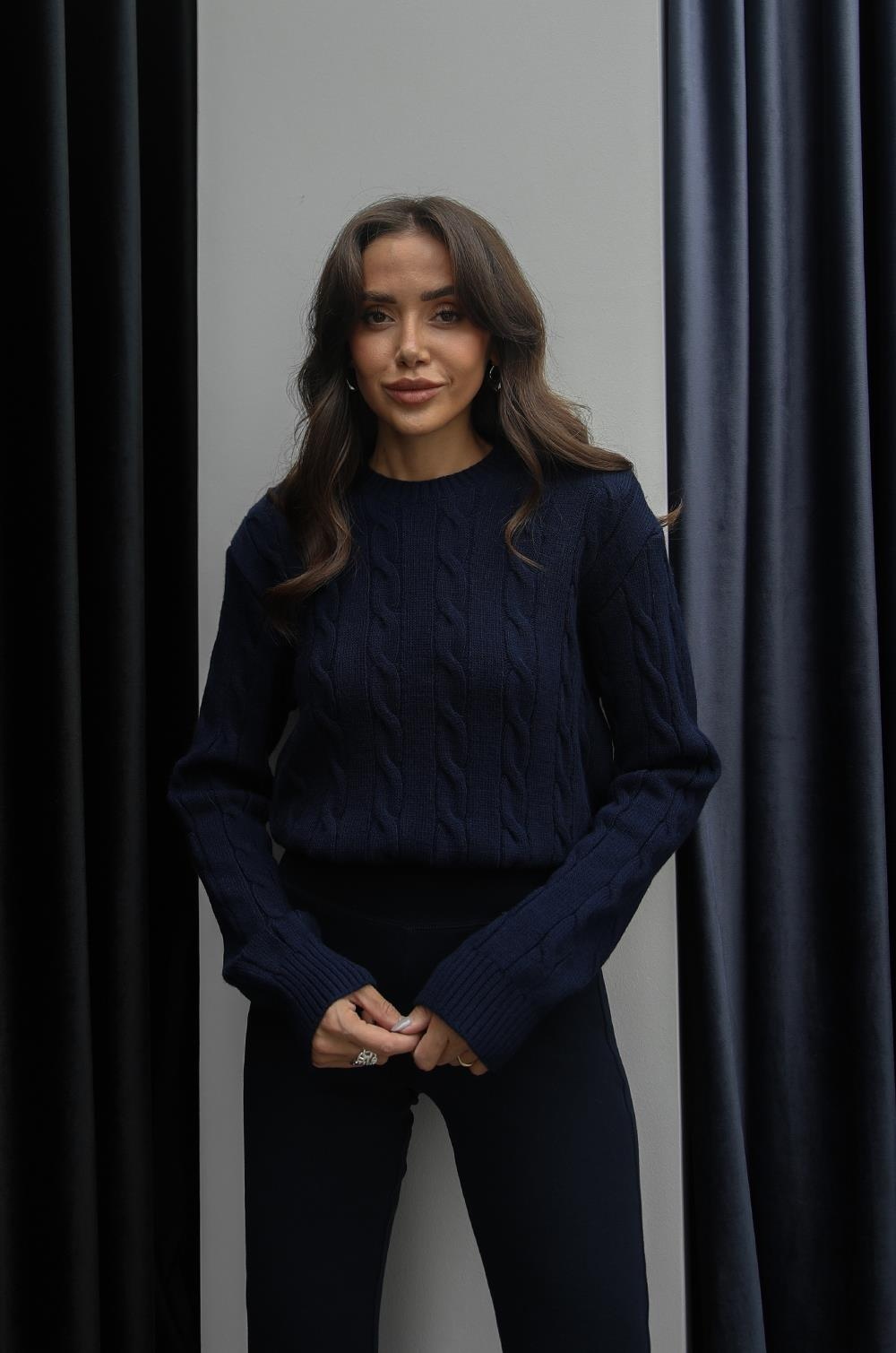 Lacivert Saç Örgülü Triko Kazak (Hkaz621)
