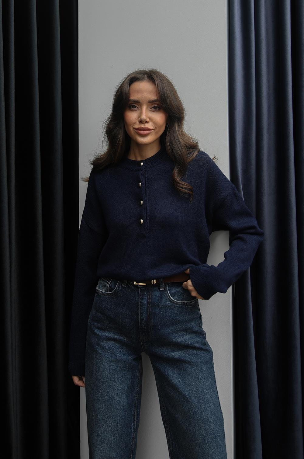 Lacivert Üstte Düğmeli Kazak (Hkaz637)