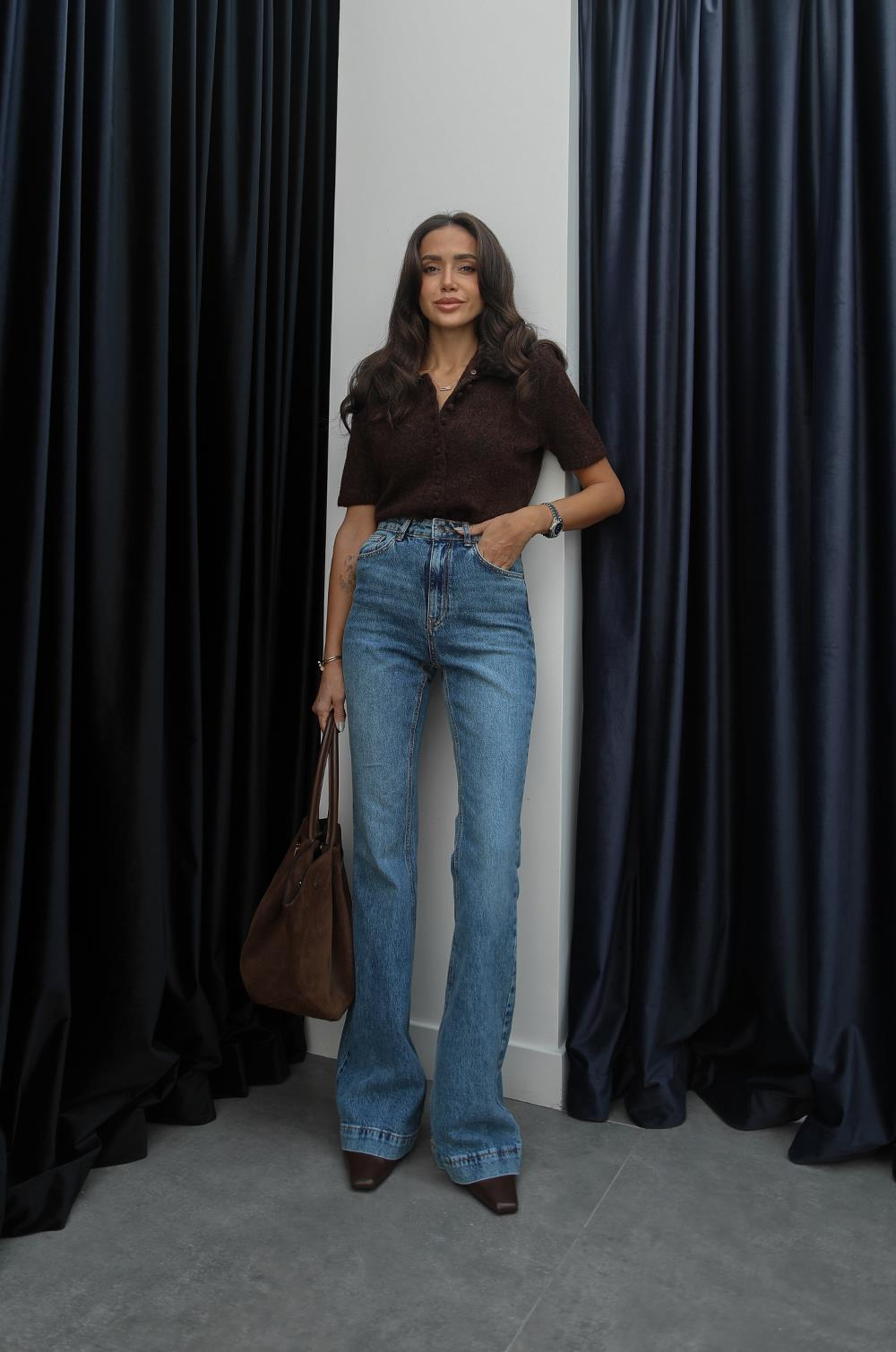 YÜKSEK BEL, ÖNÜ FERMUARLI VE METAL DÜĞMELİ, BEŞ CEPLİ, PAÇA DETAYLI JEAN