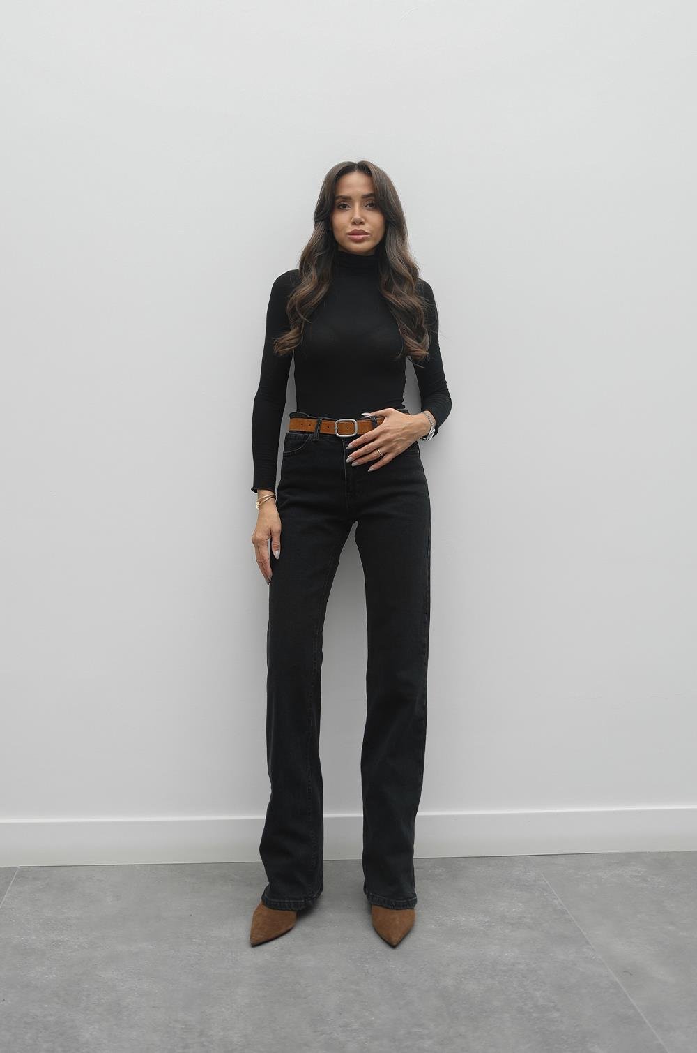 Siyah Düz Kesim Kemerli Jean (HJea586)