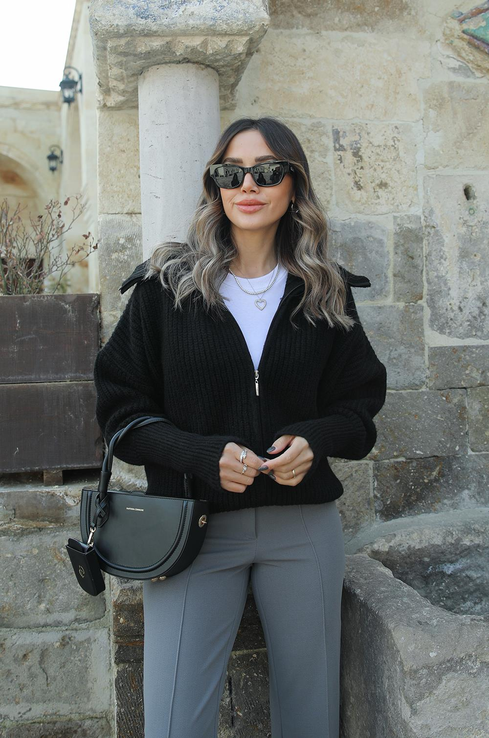 Siyah Önü Fermuarlı Hırka (Hhrk220)