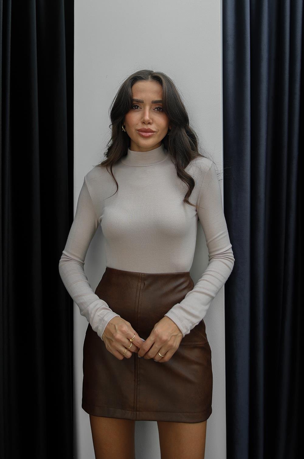 Taş Rengi Zins Yüksek Yakalı Fit Bluz (Hblu504)