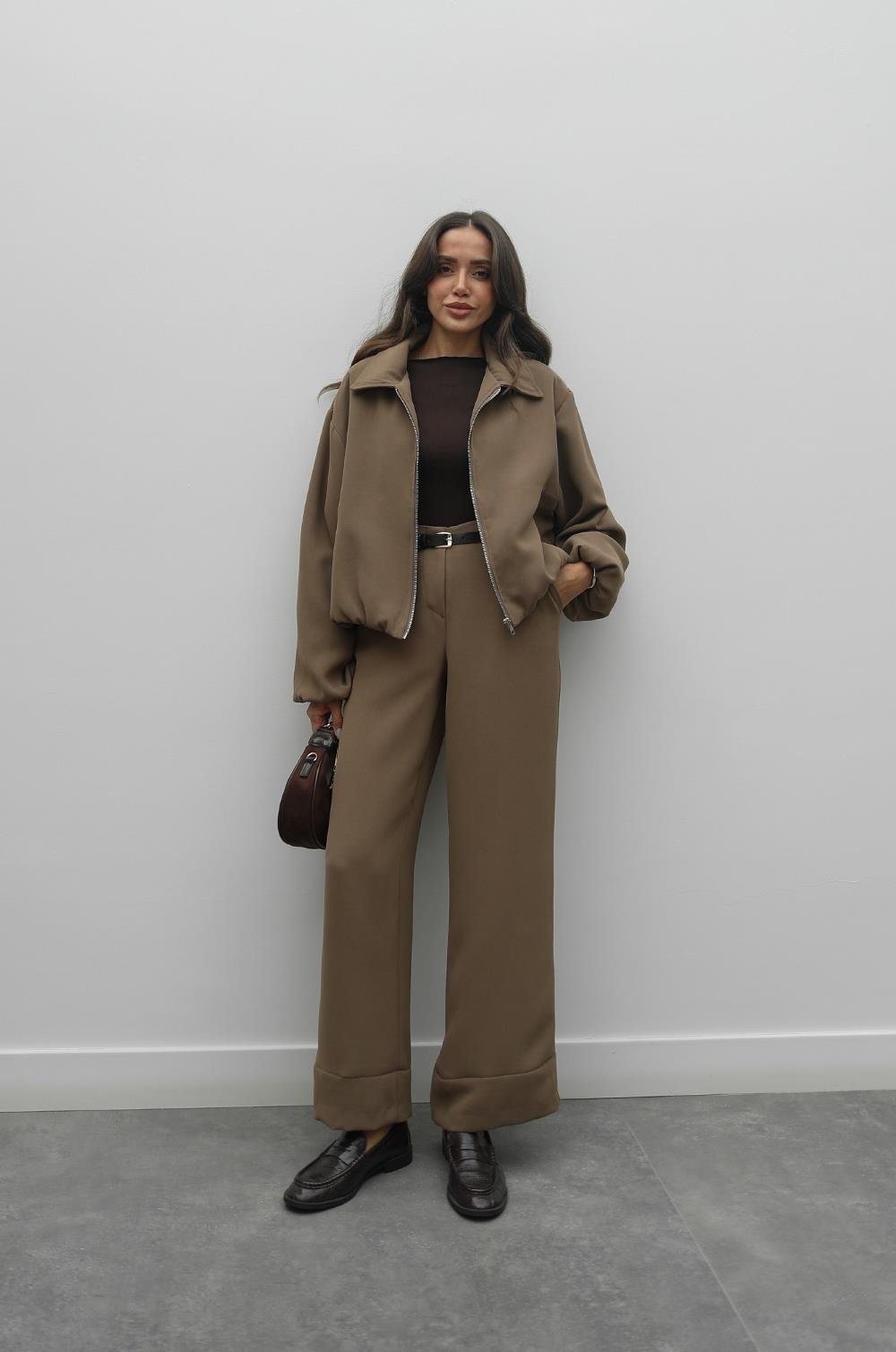 Kahverengi Paçası Katlamalı Pantolon Ceket Takım