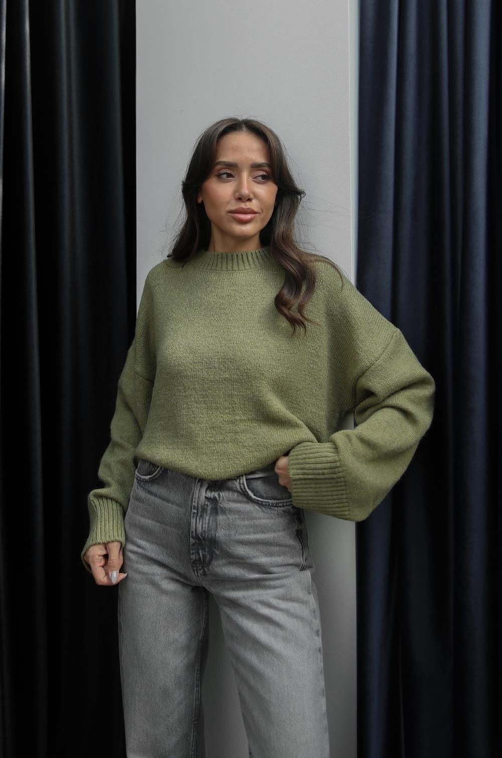 Yeşil Mary Bisiklet Yaka Oversize Triko Kazak (Hkaz628)